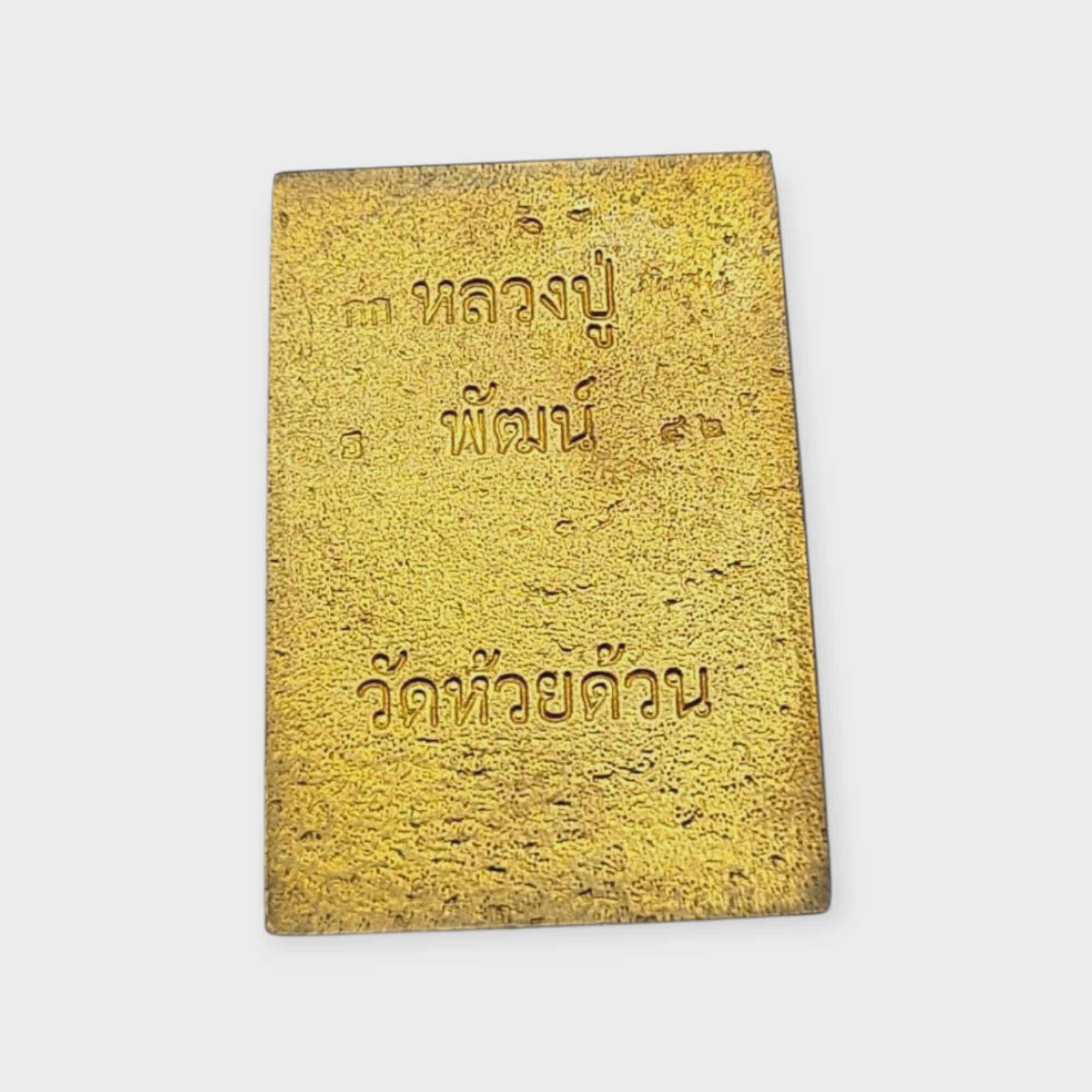 Plain golden surface engraved with Thai script: “Luang Pu Phat, Wat Huayduan”.