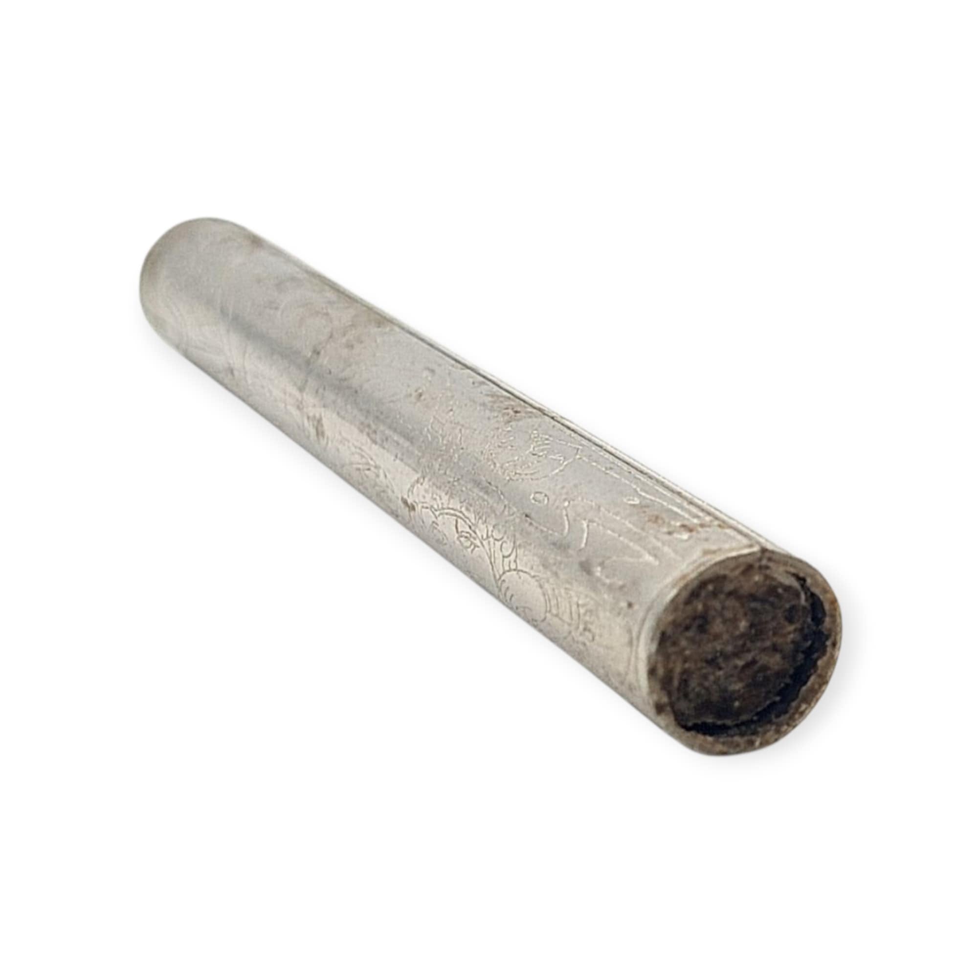 Hand-crafted from sacred metal sheets about 8 cm long and 1 cm wide, filled with 108 sacred herb powders and blessed for months by Lp Chamnan in an auspicious ceremony.